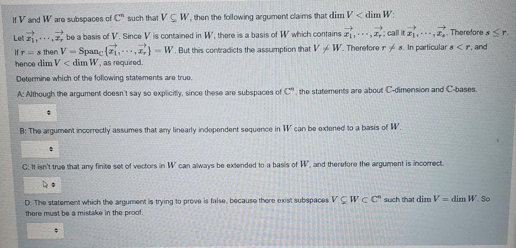 If V And W Are Subspaces Of C Such That V Cw Then Chegg Com